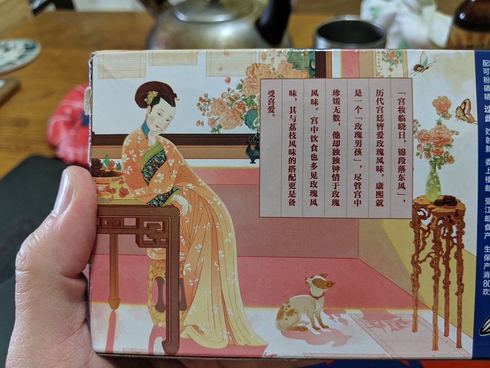 回家後才發現,這個口味也不是隨隨便便決定的,是因為康熙喜歡玫瑰口味的東西,另外又喜歡荔枝,所以打造了這荔香玫瑰糕。雖然還沒有吃,但覺得這真是一個非常成功的產品,既有故事性,又讓民眾可以假想自己是康熙皇帝,可以吃皇帝喜歡的口味所製作的餅乾。