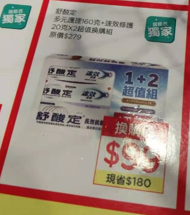 日前,因為家裡缺牙膏,太太看到宣傳單上的產品,發訊息給我,我都還沒回覆,她就買了。因為上面大大的字樣寫1+2,然後又有一個大大的盒子,很容易讓人覺得這是三條正常尺寸的牙膏。但實際上,只有一條正常的,加上兩條旅行用的。