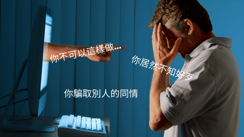 就像日前在B站上有一位罹癌的年輕女生,因為拍了一些看起來不像癌末病人會拍的影片,結果惹了一身腥,很多人還說她在裝病。但,這位女生覺得她只是想要分享自己的心情,給其他人特別是癌症患者一些鼓舞,不要覺得罹患癌症,自己的人生就結束了,就要病懨懨的。