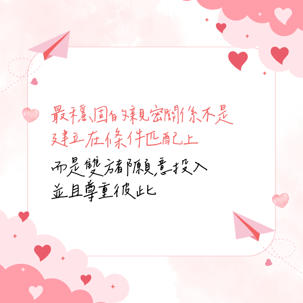 門當戶對的概念或許有它的道理,因為當雙方的成長背景、價值觀較為接近時,確實能夠減少一些摩擦。但更重要的是——找到一個願意尊重你、理解你、與你共同成長的人,而不是單純條件最好的人。